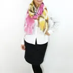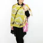 大判サイズのストールで肩から羽織る使い方もできます。春夏の日除けや室内の冷房対策としても使いやすくなっています。