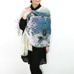 大判サイズのストールで肩から羽織る使い方もできます。春夏の日除けや室内の冷房対策としても使いやすくなっています。