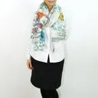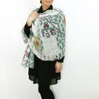 大判サイズのストールで肩から羽織る使い方もできます。春夏の日除けや室内の冷房対策としても使いやすくなっています。