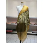 このストールは薄くて軽い生地です。使わないときは小さく折りたたみ、バッグに収納できます。外出先でも邪魔にならず、持ち運びにも便利です。