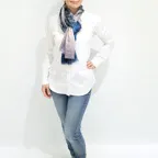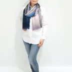 生地感よりカジュアルな普段使いにも、少しフォーマルなシーンでも使いやすいタイプです。スタイルや場所を問わず合わせることができる優れたストールです。