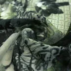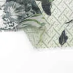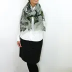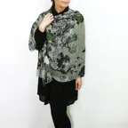 シックな花柄が効いた高級感あふれるデザイン。落ち着いたトーンで着まわしやすいアクセントストールです。