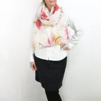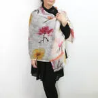 大判サイズのストールで肩から羽織る使い方もできます。春夏の日除けや室内の冷房対策としても使いやすくなっています。