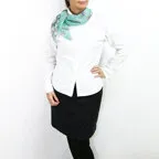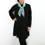小ぶりなスクエアサイズで、アスコットタイのようにシャツやブラウスの中におさめて使うこともできます。室内でも巻いたままでいられるので使いやすくなっています。