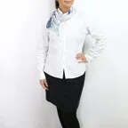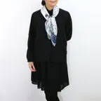 小ぶりなスクエアサイズで、アスコットタイのようにシャツやブラウスの中におさめて使うこともできます。室内でも巻いたままでいられるので使いやすくなっています。
