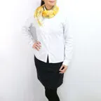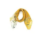 小ぶりなスクエアサイズで、アスコットタイのようにシャツやブラウスの中におさめて使うこともできます。室内でも巻いたままでいられるので使いやすくなっています。