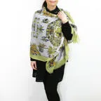 スタンダードな大判サイズで巻きでも羽織でもどちらでも使いやすくなっています。特に春夏の日除けや冷房対策としても使いやすく、ファッションのアクセントとしてなら一年中使うことができます。