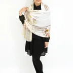 スタンダードな大判サイズで巻きでも羽織でもどちらでも使いやすくなっています。特に春夏の日除けや冷房対策としても使いやすく、ファッションのアクセントとしてなら一年中使うことができます。