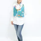 スタンダードな大判サイズで巻きでも羽織でもどちらでも使いやすくなっています。特に春夏の日除けや冷房対策としても使いやすく、ファッションのアクセントとしてなら一年中使うことができます。
