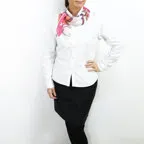 小ぶりなスクエアサイズで、アスコットタイのようにシャツやブラウスの中におさめて使うこともできます。室内でも巻いたままでいられるので使いやすくなっています。