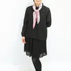 一枚でお洒落が華やかになるスカーフ。落ち着いたピンクベースの色使いで合わせやすさとアクセント効果の両方を兼ねた使いやすい一枚です。