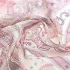 一枚でお洒落が華やかになるスカーフ。落ち着いたピンクベースの色使いで合わせやすさとアクセント効果の両方を兼ねた使いやすい一枚です。