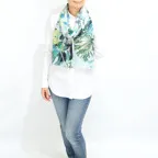 スタンダードな大判サイズで巻きでも羽織でもどちらでも使いやすくなっています。特に春夏の日除けや冷房対策としても使いやすく、ファッションのアクセントとしてなら一年中使うことができます。