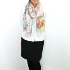 大判サイズのストールで肩から羽織る使い方もできます。春夏の日除けや室内の冷房対策としても使いやすくなっています。
