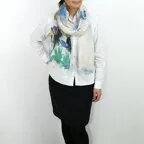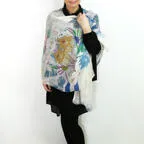 大判サイズのストールで肩から羽織る使い方もできます。春夏の日除けや室内の冷房対策としても使いやすくなっています。