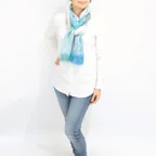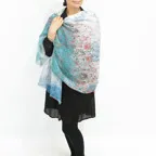 大判サイズのストールで肩から羽織る使い方もできます。春夏の日除けや室内の冷房対策としても使いやすくなっています。