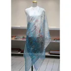 大判サイズのストールで肩から羽織る使い方もできます。春夏の日除けや室内の冷房対策としても使いやすくなっています。