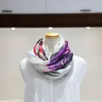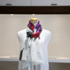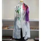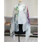 まるで水彩画を映したかのような涼しげなデザインが目を惹く一枚。凛とした美しさを誇る、名品ストールです。