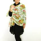 スタンダードな大判サイズで巻きでも羽織でもどちらでも使いやすくなっています。特に春夏の日除けや冷房対策としても使いやすく、ファッションのアクセントとしてなら一年中使うことができます。