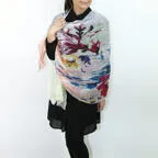 大判サイズのストールで肩から羽織る使い方もできます。春夏の日除けや室内の冷房対策としても使いやすくなっています。