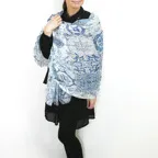 大判サイズのストールで肩から羽織る使い方もできます。春夏の日除けや室内の冷房対策としても使いやすくなっています。