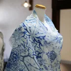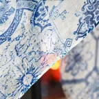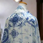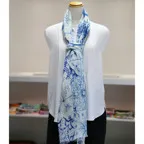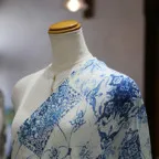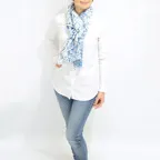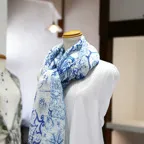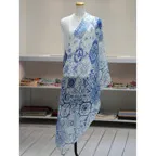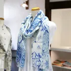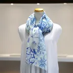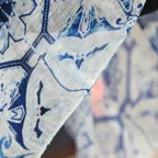 コントラストの効いたオリエンタルブルー&ホワイトの美しいコンビネーション。アクセント効果も高く、シンプルになりがちな夏ファッションのお供に最適な一枚です。