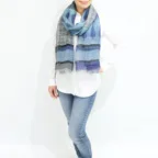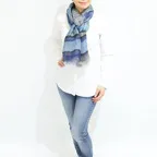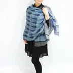 大判サイズのストールで肩から羽織る使い方もできます。春夏の日除けや室内の冷房対策としても使いやすくなっています。