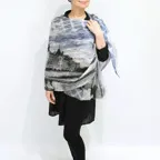 大判サイズのストールで肩から羽織る使い方もできます。春夏の日除けや室内の冷房対策としても使いやすくなっています。