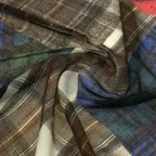 幾何学とチェック・ボーダーが融合したおしゃれな柄。メンズライクなデザインが、知的な大人らしさを引き立てます。