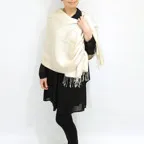 バランスがよいミドルサイズのため、ボリュームを抑えつつ様々な場面で活用できます。巻きでも羽織でもどちらでも使いやすくなっています。