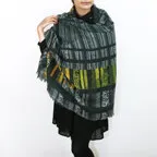 非常に大きなショールサイズで、広げて羽織れば上半身をすっぽりと覆うことができます。縦横の長さも十分にあるため、巻き方の自由度が広がります。程よいボリューム感と立体感を簡単につくることができるため、一巻きでこなれた印象になります。面積もあるので、真夏の室内での冷房対策や膝掛けとしても使いやすくなっています。