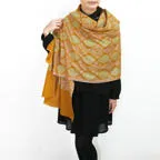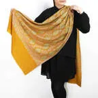 198cm×70cm大判サイズで、巻きでも羽織でもどちらも使いやすいストールです。特に羽織は全面に施された刺繍が美しく輝き、サッとあしらうだけでゴージャスな雰囲気に変化します。