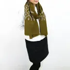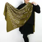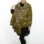 バランスの良い大判サイズで、巻きでも羽織でもどちらも使いやすいストールです。特に羽織は全面に施された刺繍が美しく輝き、サッとあしらうだけでゴージャスな雰囲気に変化します。