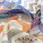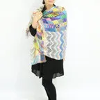 カラフルな色使いの幾何学ストール。多色使いで見た目以上に様々なお洋服に合わせることができます!