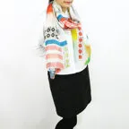 大判サイズのストールで肩から羽織る使い方もできます。春夏の日除けや室内の冷房対策としても使いやすくなっています。