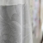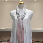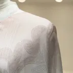 生地の向こうに透けるトップスや素肌が美しく見える、まるでメイクの仕上げに使うパウダーのようなストール。程よいハリ感があり、肌に付かず離れずの質感になっています。絶妙なボリューム感と美しいシルエットも他とは違う大きな魅力です。