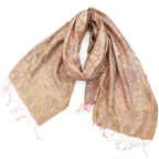 スタンダートな大判サイズで巻いても羽織っても、どちらも使いやすいタイプです。特に羽織は全体の印象がパッと華やかに、エレガントな雰囲気に変化します。