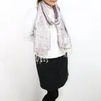 スタンダートな大判サイズで巻いても羽織っても、どちらも使いやすいタイプです。特に羽織は全体の印象がパッと華やかに、エレガントな雰囲気に変化します。