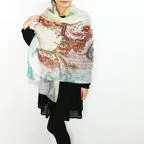 大判サイズのストールで肩から羽織る使い方もできます。春夏の日除けや室内の冷房対策としても使いやすくなっています。