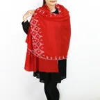美しさが違う、選び抜かれた大人のカシミヤストール。鮮やかなレッドカラーに主張しすぎない煌びやかな刺繍が映える一枚です。
