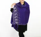 バランスの良い大判サイズで、巻きでも羽織でもどちらも使いやすいストールです。特に羽織は全面に施された刺繍が美しく輝き、サッとあしらうだけでゴージャスな雰囲気に変化します。