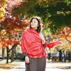 スタンダートな大判サイズで巻いても羽織っても、どちらも使いやすいタイプです。特に羽織は全体の印象がパッと華やかに、エレガントな雰囲気に変化します。