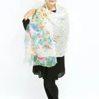 大判サイズのストールで肩から羽織る使い方もできます。春夏の日除けや室内の冷房対策としても使いやすくなっています。