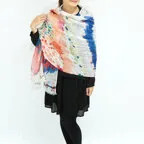 大判サイズのストールで肩から羽織る使い方もできます。春夏の日除けや室内の冷房対策としても使いやすくなっています。