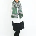 生地感よりカジュアルな普段使いにも、少しフォーマルなシーンでも使いやすいタイプです。スタイルや場所を問わず合わせることができる優れたストールです。