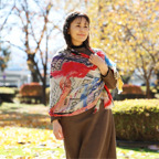 このストールは薄くて軽い生地です。使わないときは小さく折りたたみ、バッグに収納できます。外出先でも邪魔にならず、持ち運びにも便利です。