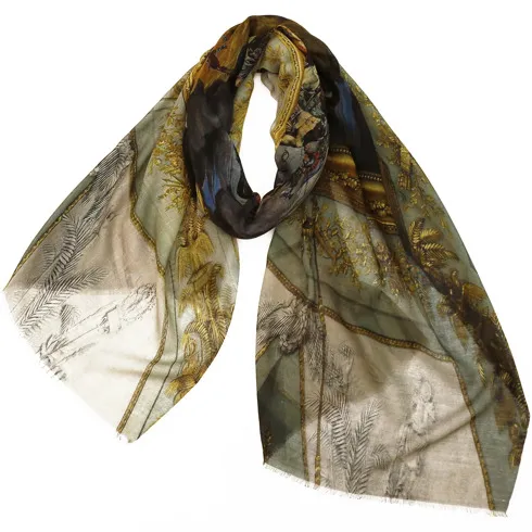 ウールカシミヤシルクストール:プリントデザイン