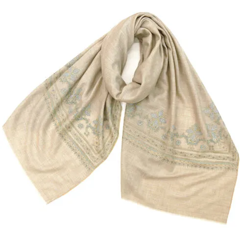 カシミヤストール/手織り/手刺繍