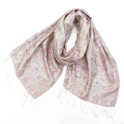 カシミヤストール:手織り/手刺繍/リバーシブルデザイン