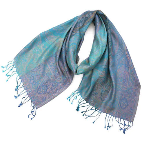 カシミヤストール:手織り/手刺繍/リバーシブルデザイン